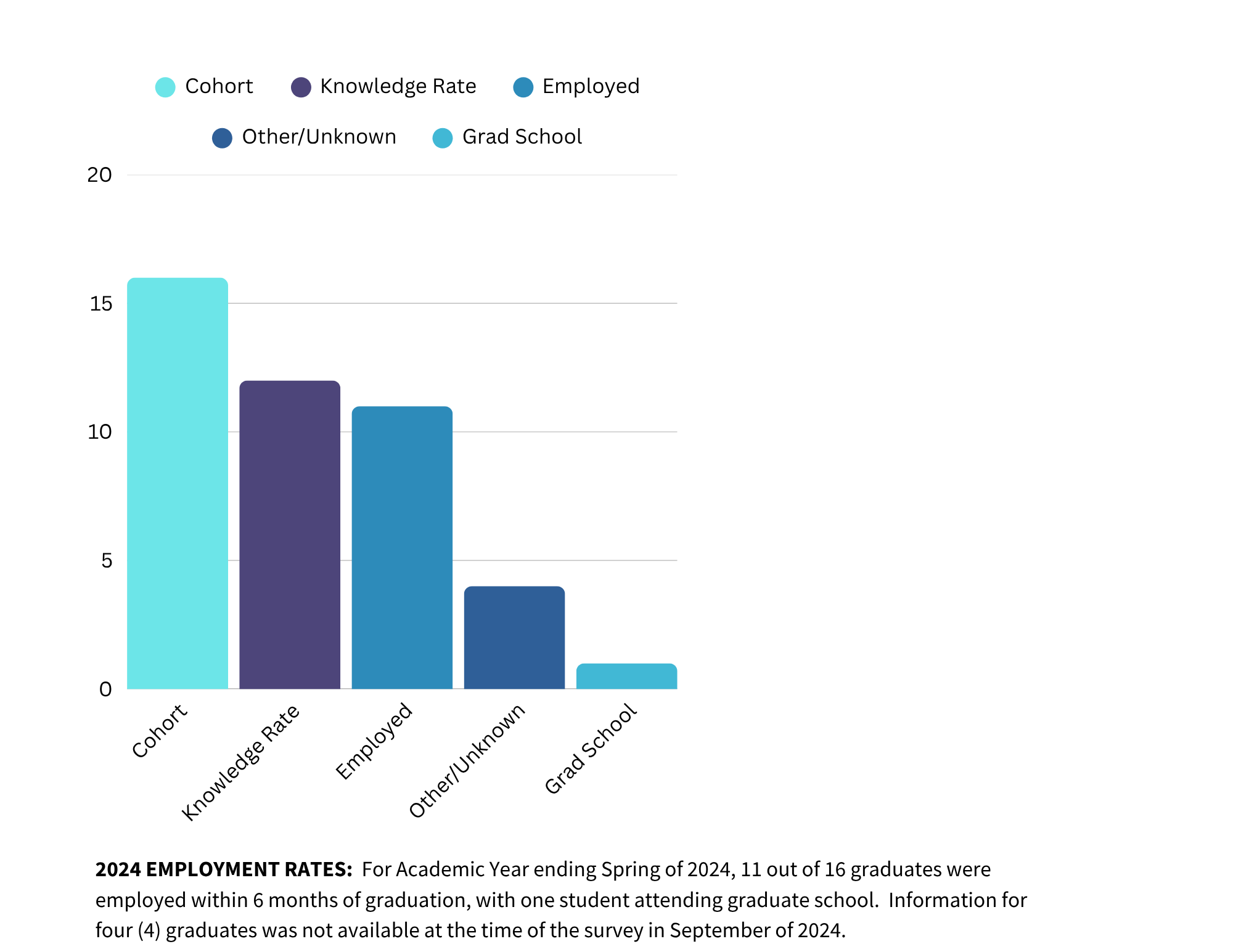 - Of the 17 graduates, none are in graduate school and data was not available for 2. Thirteen (13) are employed full-time and 2 are not employed, part-time, or other.