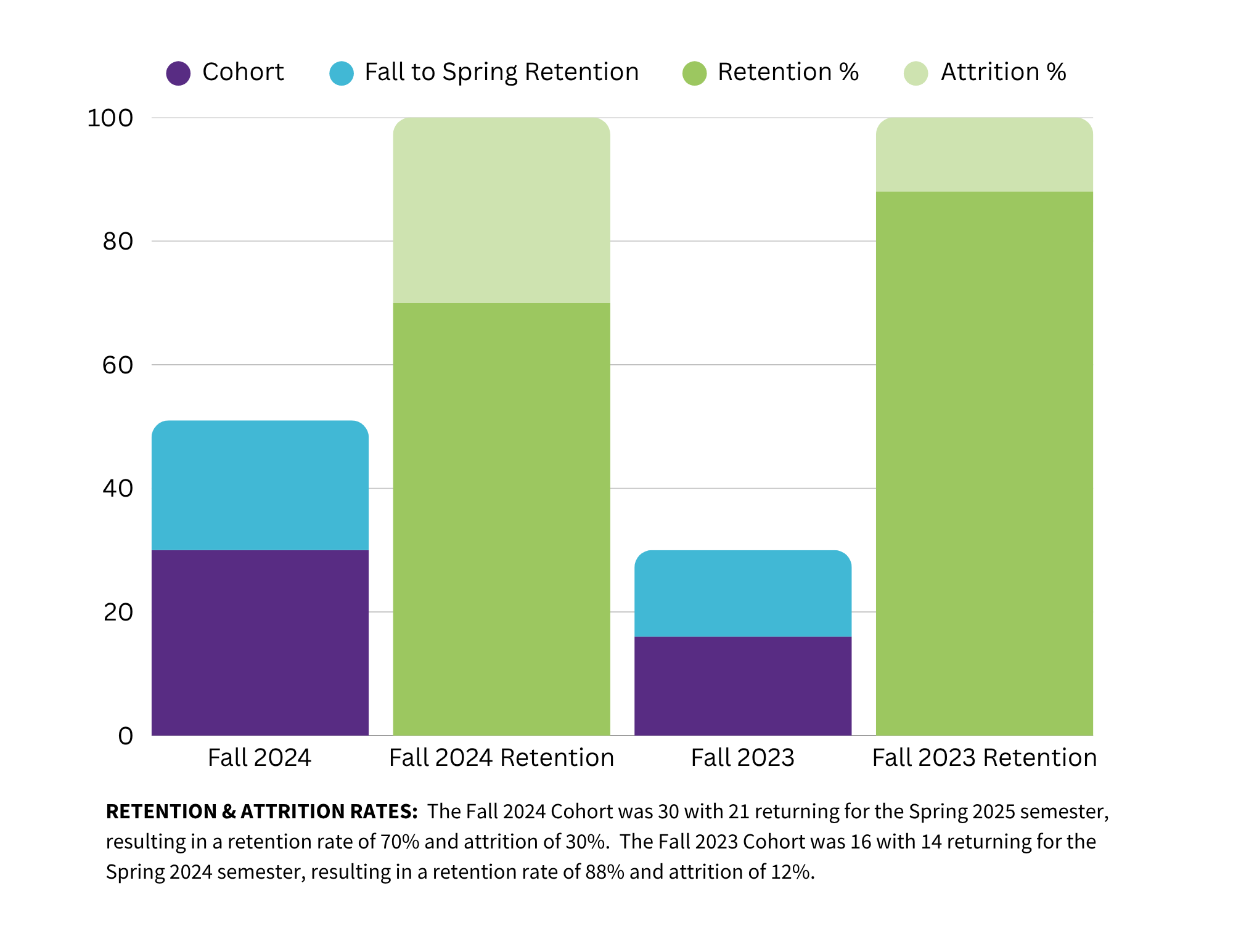 - 88% of the Interior Design majors enrolled during the Spring 2023 semester returned in the Fall, 2023, putting the attrition at 12%.