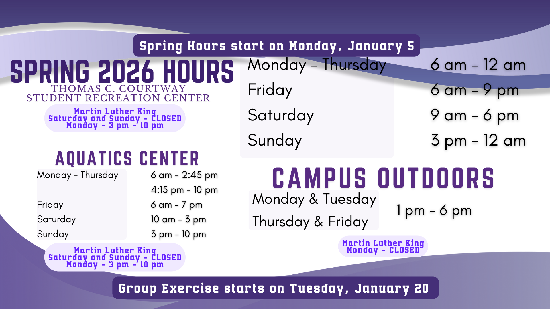 Planned and unplanned closures will be posted on this page and at the facility entrance. Next update: TBA.