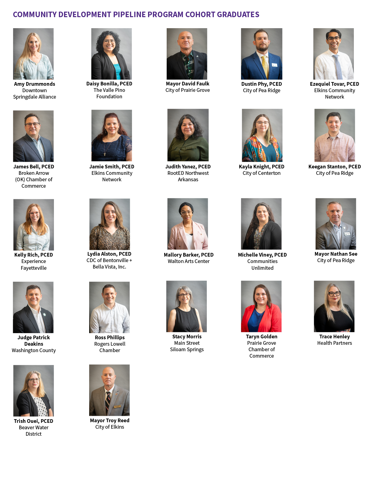 Twenty-two (22) community leaders from Benton and Washington counties completed the Community Development Pipeline program (2023 – 2025). Join us in celebrating this cohort on their achievements through the program: