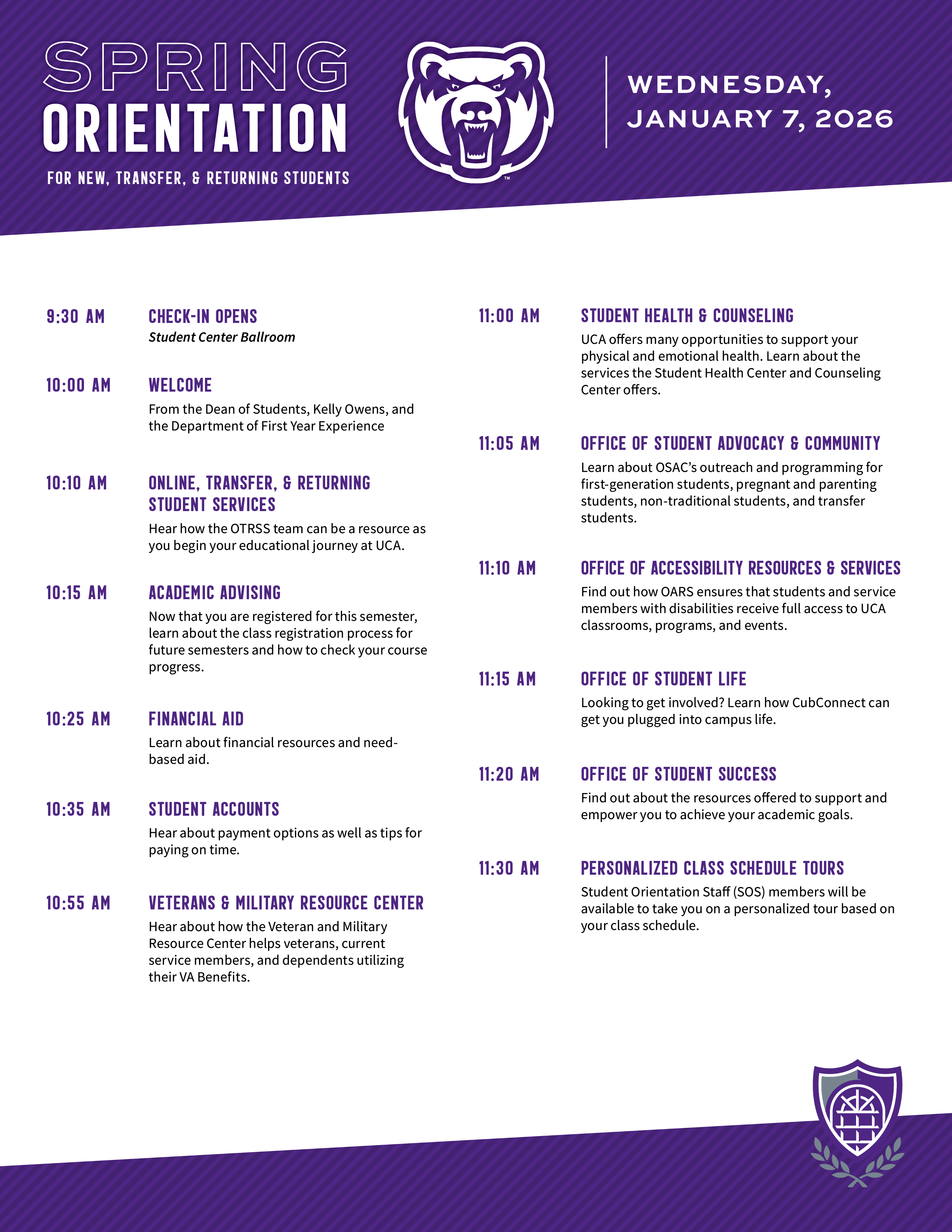 Congratulations on your admission to UCA! We are so excited you will be attending UCA and look forward to connecting you to the many resources we have to offer and the new community you will soon call “home.”