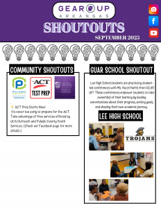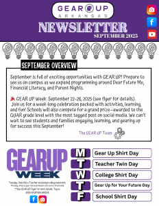 Special Events: One off events like school choice fair, Meet the teacher nights, National GEAR UP Week, Kick-Off Celebrations, and much more