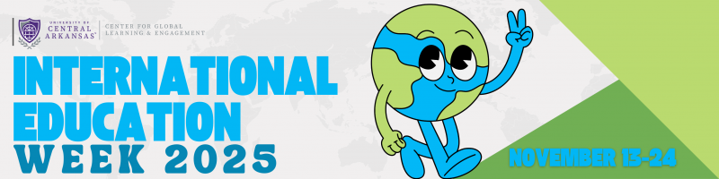 The Center for Global Learning & Engagement is excited to announce that International Education Week (IEW) 2025 will be celebrated November 13th – 24th! IEW celebrates the benefits of international education and exchange worldwide. With 320 students from over 70 countries here at UCA, IEW gives our international students the opportunity to share many facets of their culture with the community. Additionally, during this week we promote study abroad opportunities with the Office of Education Abroad, and to show how the work of academic departments and students can have a global impact. Please visit our webpage for registration and full details of the events.