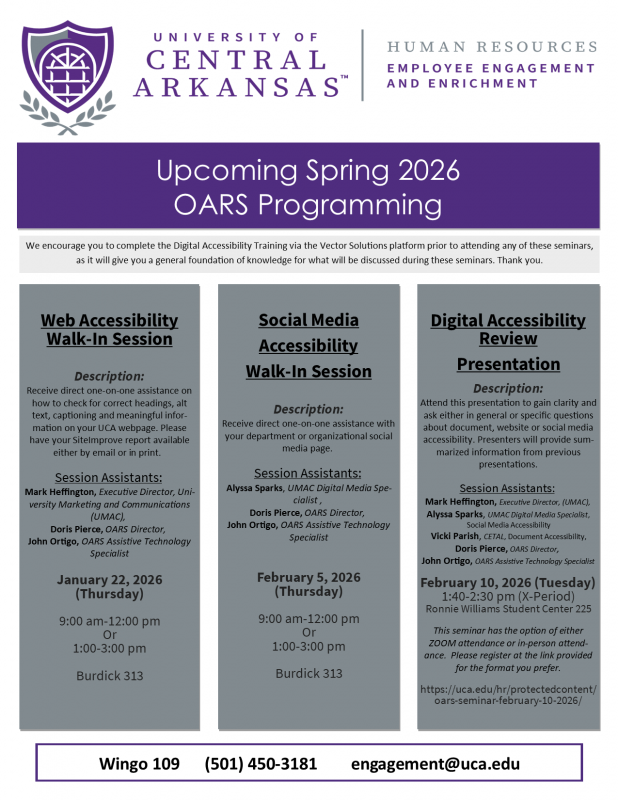 Submitted by: Jennifer Deering, jdeering@uca.edu on 01/11/2026
