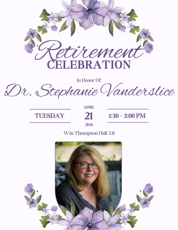 Dr. Stephanie Vanderslice, Professor of Creative Writing & Co-Director of the Arkansas Writers MFA Workshop, is retiring after 29 years of dedication to our students and this institution. If you’ve had the privilege to know her over the years, please stop by Thompson Hall 331 from 1:00pm – 3:30pm on Tuesday, April 21st to wish her well in her retirement!