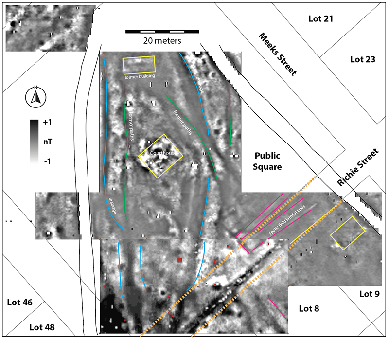 Additional survey is planned for future field work to include the un-surveyed areas within the Public Square, as well as Lots 46 and 48 to the west, and Lots 8 and 9 to the south. With a larger survey area, patterns and anomalies that might initially seem isolated are more readily visualized, which defines a landscape approach to understanding a more continuous and related culturally modified space (Kvamme 2003).