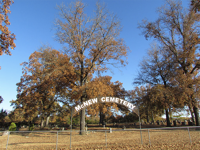 Between November 2021 and December 2022, the Jamie C. Brandon Center for Archaeological Research (JCB Center) and Faulkner County Museum conducted a survey and mapping program at the historic McNew Cemetery (3FA347; Figure 1). The cemetery is located less than a mile from Woolly Hollow State Park in what is known as the Centerville Community (see Dolan et al. 1986:290). In 1855, William and Elizabeth McNew and their six children settled on 160 acres of land, and ultimately acquired a significant amount of additional land to become substantial farmers in the area. Oral tradition states that young Valentine McNew, son of William and Elizabeth, died in February 1858, at the age of 9 (b. June 1948). He was carried to a low rise and buried on the McNew property. William McNew later donated the 2.5-acre land to create the cemetery. It is an active cemetery with over 500 individuals interred and several locations reserved. Today, it is managed and maintained by the McNew Cemetery Board.