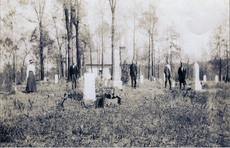 Figure 10. Historic photograph of the McNew Cemetery with the chapel in the background. The photo is estimated to date to April 1917.