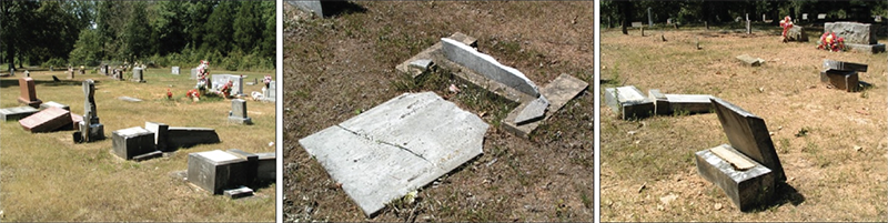 Figure 2. Images documenting vandalism that occurred in July 2008 at McNew Cemetery.