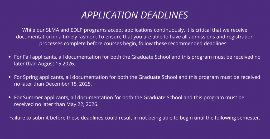 For candidates who have completed a Masters degree in Building Level Administration and are seeking licensure-only as a district-level administrator, click here to view the Post Master’s Certificate courses for district-level administration.
