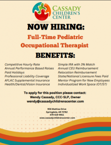 The job opportunities provided below were forwarded to the Department of Occupational Therapy at the University of Central Arkansas for the purposes of sharing with the occupational therapy program graduates and the occupational therapy community.